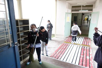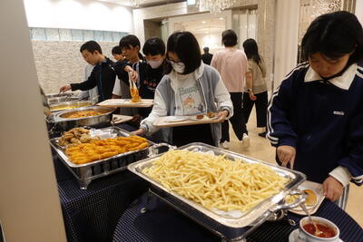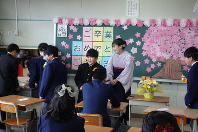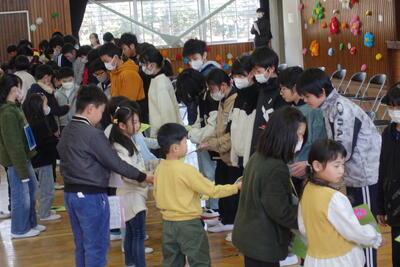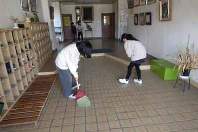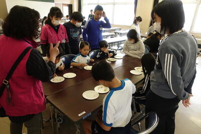 ボランティアとして来ていただいたおかげで、時間通りに給食の配膳準備ができ、片付けも滞りなく行うことができました。そのおかげで、子供たちは昼休みにいっぱい遊んだり、掃除をしっかりしたりすることができました。児童・職員一同、感謝しております。これまで本当にありがとうございました。