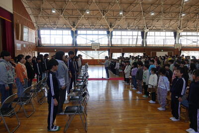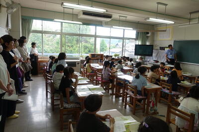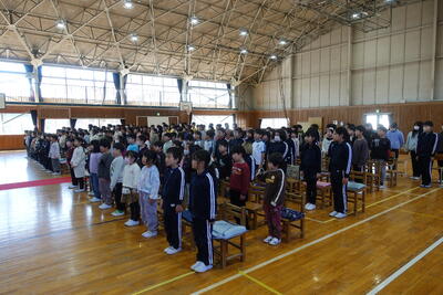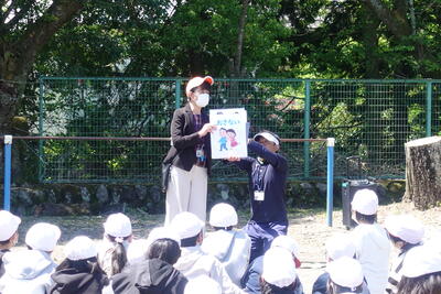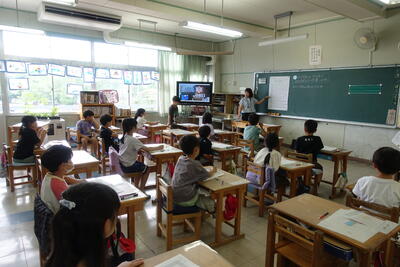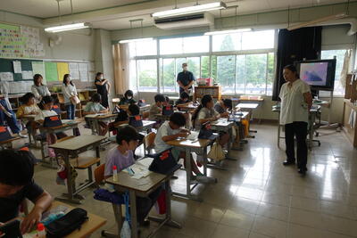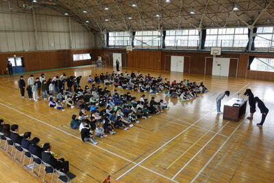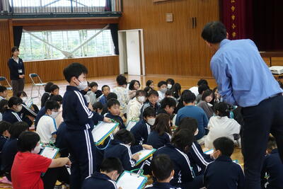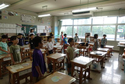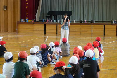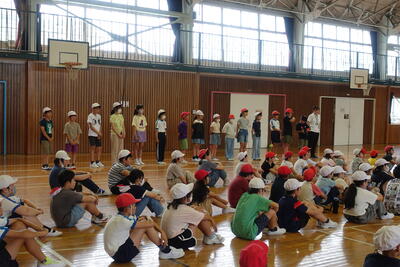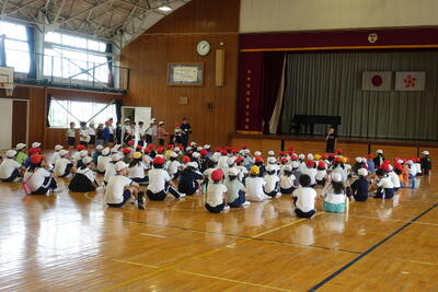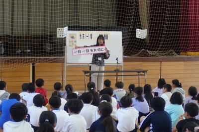終業式の後には、児童指導主任から、水難事故に気をつけるようにとの話がありました。ライフジャケットの着用や川の増水に気を付けること、川で遊ぶ際には大人の人が必ず一緒にいることなどの話がありました。