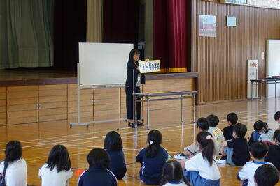 学校図書ボランティア「スマイル・スマイル」による人形劇「戦場ヶ原ものがたり」を実施しました。広場の時間に1~3年生、昼休みの時間に4~6年生と2回公演を行っていただきました。