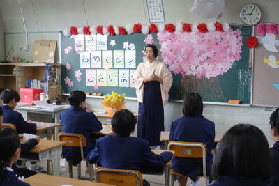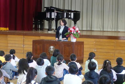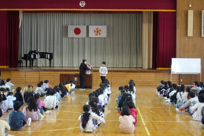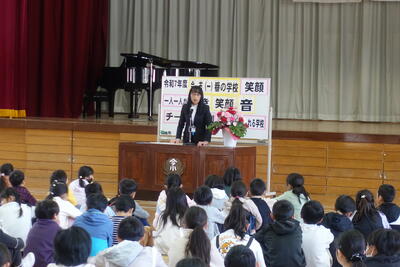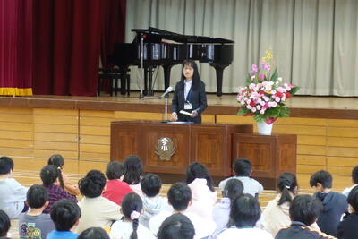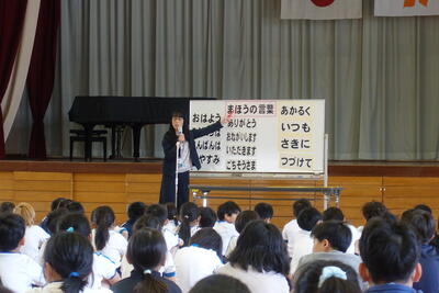このお話をもとに、「あかるく いつでも さきに つづけて」のまほうの言葉であふれる学校にしていってほしいとお話しされました。