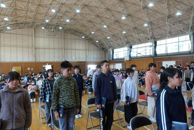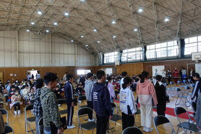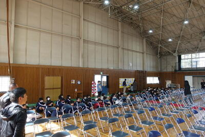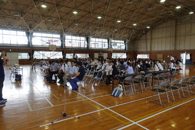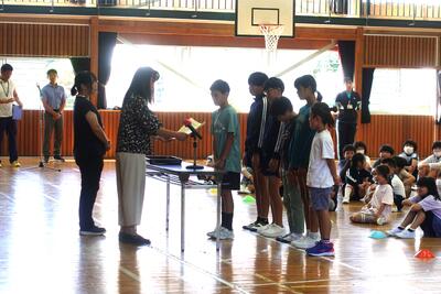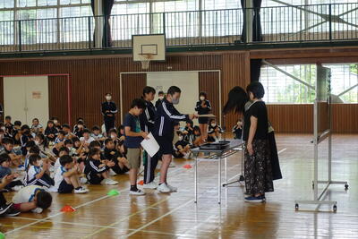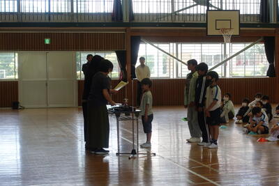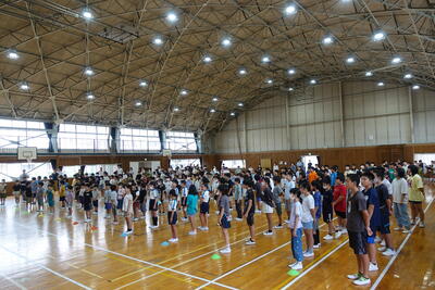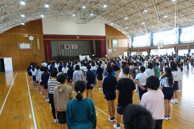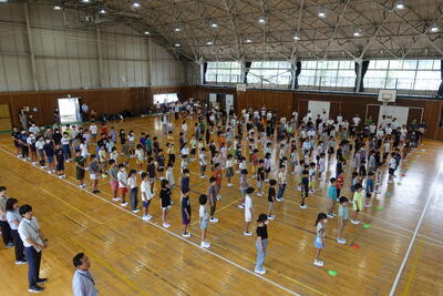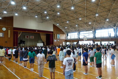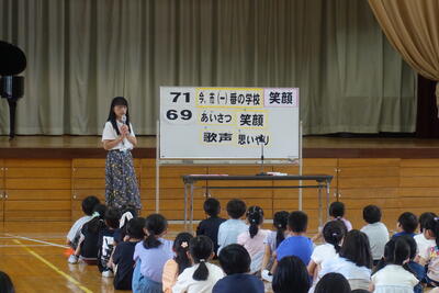9月5日(木)の広場の時間に朝会がありました。どの学年も落ち着いて体育館に入場し、静かに待つことができました。