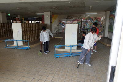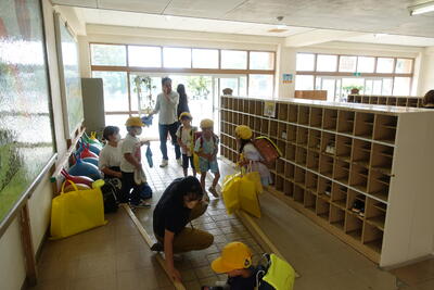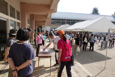 1~4年生は給食終了後下校し、5・6年生、PTA役員、保護者の皆様、ICMおやじの会、職員で準備をしました。多くの方々にお越しいただいたおかげで、スムーズに準備を進めることができました。