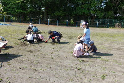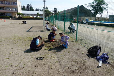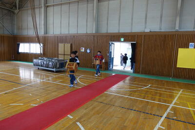 5・6年生は体育館や会議室から机といすを運び、グラウンドの整備(ならし、石拾いなど)をしました。みなさんのがんばりで予定よりも早く会場の準備ができました。準備にご協力いただいた皆様、本当にありがとうございました。