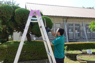 今年も雑草の生育が大変よく、根がしっかりとし校庭が草原のようになってしまい大変でしたが、多くの方の協力のもとがんばりました。草刈り機やトリマーなどで、校内の植え込みもきれいに剪定するとともに、校内のトイレもきれいにしていただきました。