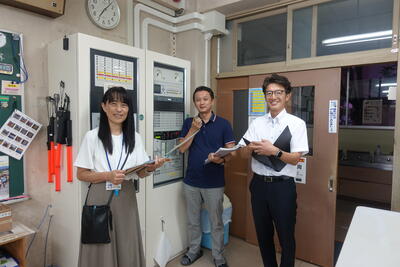 9月5日(木)にH.C.栃木日光アイスバックスのみなさんが「しかっち見守り隊」として、朝の交通安全指導に来てくださいました。本校の卒業生である石川選手と大塚選手をはじめとして、マスコットキャラクターのしかっちさんなどが、横断歩道に立ち、登校時の安全を見守ってくれました。