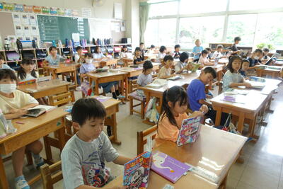 7月19日(金)、1学期の最後の日を迎えました。子供たちは普段と変わらず登校し、朝の準備を済ませ、落ち着いて朝の会を迎えていました。