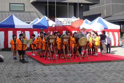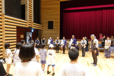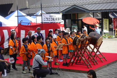平ヶ崎お囃子保存会のみなさんのバックアップがあり、子供たちはこれまでの練習の成果を存分に発揮していました。とても上手に演奏ができ、会場には自然と踊りの輪ができ、演奏が終わると会場のみなさんから大きな拍手が送られていました。