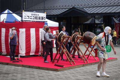 8月11日(日)「ニコニコ本陣 和楽踊り2024」の本番の日です。日差しの強い暑い中、ワールドクラブのみなさんが演奏を披露しました。