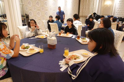 栃木県庁では、職員の方の案内で、旧庁舎である昭和館や普段は入れない災害対策本部を設置する部屋などを見学させていただきました。県庁で働く方がどのような仕事をしているのか学んだり、栃木県の特色や工芸品等を見て自分たちが住む栃木県について改めて考えたりと、貴重な経験をさせていただきました。見学後は、県庁内の生協食堂で、おいしいお昼ご飯もいただきました。