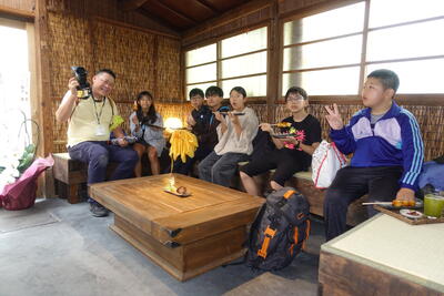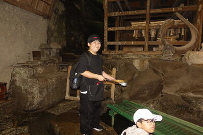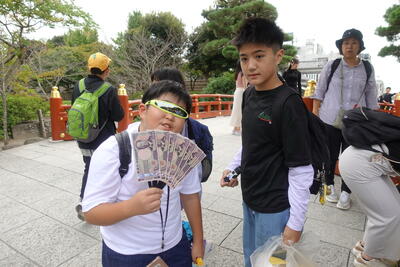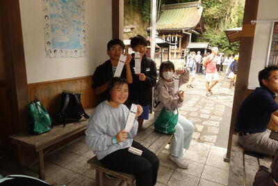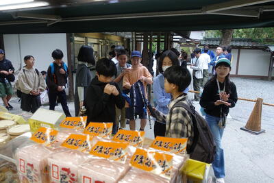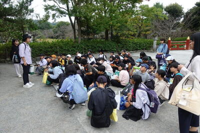 解説の後、全員が実際に十二単を試着させていただきました。想像以上の衣装の重さにびっくりです。みんな、ちょっとだけ貴族の雰囲気を味わうことができました。