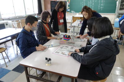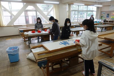 6年生はトートバッグを制作しています。1年ぶりのミシンに使い方を思い出しながら、友達同士で教え合う場面もたくさん見られました。