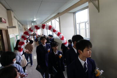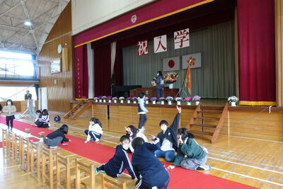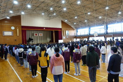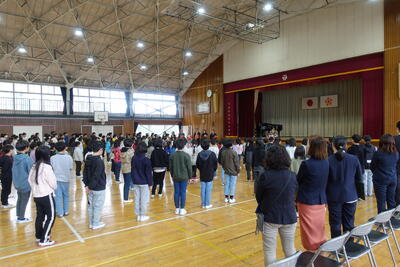 〇吹奏楽部による校歌斉唱          〇LED照明になった体育館での初の校歌斉唱