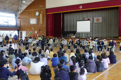 12月3日(水)に学習発表会が行われました。吹奏楽部の発表、1・2年生は国語の学習、3~6年生は総合的な学習を中心に歌唱や合奏を取り入れた発表、全校児童の歌唱の発表をしました。