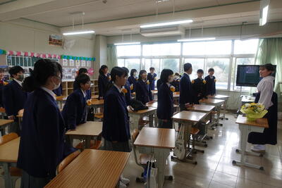 12月16日、笑顔(1・2年生)でチーム朝会が行われました。