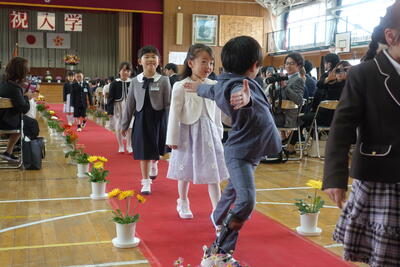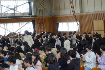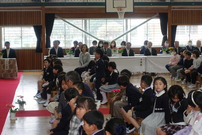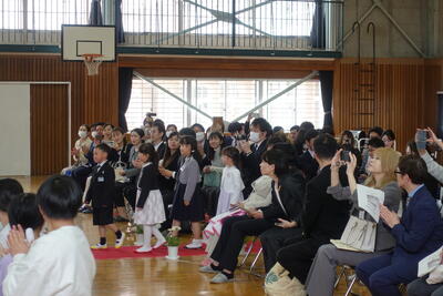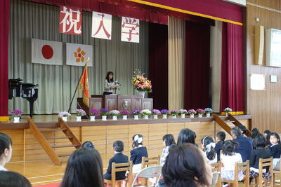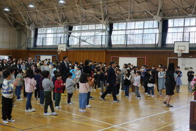 校長先生からは、全盲のピアニストである辻井伸行さんの話を取り上げ、「あかるく」「たのしく」「あきらめない」を合言葉にして努力してきたこと、「努力をすればいつか夢がかなう」というお話しをいただきました。子どもたちは真剣に校長先生の話に耳を傾けていました。