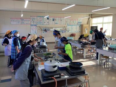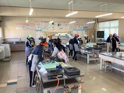 12月16日(火)6年生の家庭科「こんだてを工夫して」の学習で調理実習を行いました。
