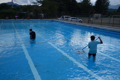 また、校内の樹木の剪定とプール前の通路の整備をヨネザワフォレスト様に行っていただきました。通路は凸凹がなくなり、走りやすくなっていることと思います。樹木は前庭のイチョウの木とヒマラヤスギの枝おろしをしてもらいました。(ヨネザワフォレスト様、どうもありがとうございました。)