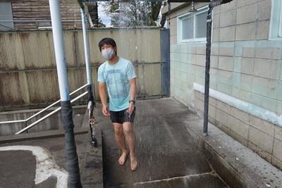 そこにICMおやじの会から救世主として猪瀬様と西岡様が手伝いに来てくださいました。本校の職員も一緒に作業をしましたが、体育倉庫のしまい方について、本校職員よりも詳しいくらいで、あっという間に天幕の片付けが終わりました。