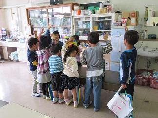 案内係の子どもたちは、1年生をつれて各場所を回ります。優しく、整列や片付けの声かけをすることができました。