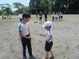 1年生が楽しめるように、2年生は道具を準備してあげたり、ポイントを教えたりしていました。