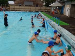 今年は、雨が多く、気温も低かったので、なかなかプールに入ることができず、指導内容を消化できるか心配でした。しかし、目標の4回(8時間)入ることができ、子どもたちは、潜ったり、けのびをしたり、バタ足をしたりできるようになりました。
