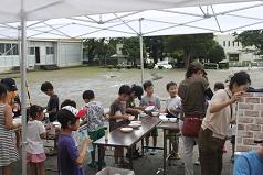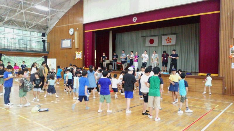 午後の部は、製作とミニ屋台が行われました。製作では、うちわ作り・ペーパークラフト作り・水でっぽう作りに分かれ、楽しく活動しました。ミニ屋台では、焼き鳥・じゃがバター・アイスクリーム・ジュースなどをPTA役員の皆様方が作って下さり、子どもたちに振る舞っていただきました。閉会式では、PTA会長の発案で参加した子どもたち一人一人が夢や希望を書いた折り紙で作った紙飛行機を、体育館のステージから飛ばしました。本校の学校像を形にしてくださり感謝の念しかありません。それを役員や男性職員がステージから飛ばしました。本当に楽しい一日でしたが、子どもたちの夢や希望を実現する学校をみんなで作り上げていくことを確認するひとときともなりました。サマースクールのためにご尽力いただいた全ての皆様に感謝を申し上げます。ありがとうございました。