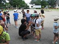 6校時のクラブの時間に、スポーツクラブとグランドゴルフクラブの皆様とでグランドゴルフを行いました。本校の地域教育協議会の委員であり、中央公民館職員の野口さんが、今回の活動を設定してくださいました。クラブの皆様は、初めて活動する子ども達にとても親切に教えてくださいました。子ども達も集中して、ボールを打っていました。一人一人声かけをして教えてくださったり、次々とボールを打つ子ども達のボールの球拾いをしてくださったりと、子ども達を温かく見守りながら、交流してくださいました。子ども達も「なかなか難しい」「結構おもしろい」など、初めての活動に興味津々でした。また、クラブの皆様と会話を交わしながら活動する子もいました。活動の最後には、道具の後片付けを進んでお手伝いし、「ありがとう」と褒めていただいた子もいます。クラブの皆様、ありがとうございました。地域の皆様と子ども達とで楽しく活動できるとありがたいと思います。