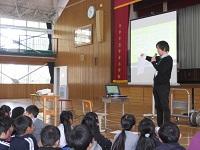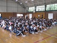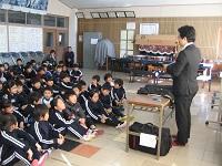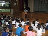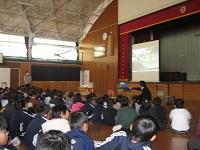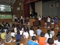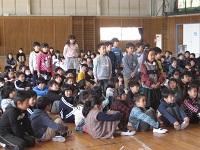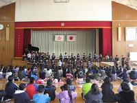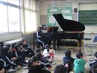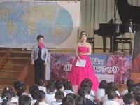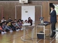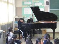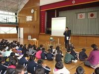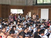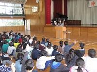 第4回道徳朝会を実施しました。今回の講師は、とちぎ未来大使、日光観光大使の大嶋浩美さんです。はじめに御自身の経歴をもとに、御自身を支え励ました言葉や出会った人々から学んだことなどを話してくださいました。水泳に熱中した時には「できると思えばできる。できないと思えばできない。やる前からあきらめない」という言葉に励まされたそうです。海外で学んでいた頃には、壁にぶつかることもあり、それを破る2つの力、?壁を内側からこわす力(努力、強い気持ち)、?壁を外側からこわす力(家族や先生のサポート)を支えにがんばったそうです。「経験したことが自分を作り、未来の自分を作る」ということも話されました。続いて、ドレスに着替え、「心に響くもの」としてピアノを演奏してくださいました。バッハの「プレリュード」ショパンの「革命」等の演奏に続いて、子ども達と一緒に「おもちゃのちゃちゃちゃ」を演奏してくださいました。続いてバイオリンを体験してみようということで、大きさの違うバイオリンを7台用意し、子ども達に実際に音を出させてくださいました。最後にはお母様の大嶋早苗さんと「カノン」を演奏してくださいました。なんとアンコールでは運動会での定番の曲「天国と地獄(邦題)」を子ども達と一緒に合奏しました。地域の皆様も一緒に手拍子をとってくださいました。1時間という限られた時間でしたが、子ども達へのメッセージやピアノ・バイオリンの演奏、子ども達との合同演奏と充実した「楽しい音楽の時間」を創り上げてくださいました。子ども達も大嶋さんの美しい姿に見とれたり、握手を求めたりと別世界を楽しんでいました。大嶋浩美さんの気さくなお人柄も素敵でした。大嶋浩美さんのように夢を叶える子ども達になってほしいものです。