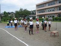 広場の時間に音楽朝会を実施しました。今回の発表は34年生です。はじめに全校合唱です。全校生で「ビリーブ」を合唱しました。次に3年生の発表です。「おかしのすきなまほうつかい」を合唱しました。途中「まほうの音」を入れて工夫していました。鍵盤ハーモニカやリコーダー、木琴、鉄琴などの楽器を使って「ミッキーマウスマーチ」を合奏しました。4年生は「いつだって!」を自分達で振り付けを考えて踊りながら合唱しました。リコーダーや鍵盤ハーモニカ、木琴、鉄琴、大太鼓などで「茶色の小びん」を合奏しました。のびやかな歌声や演奏が響き合い、素敵なひとときとなりました。最後に学校長の話です。「一つの言葉」についての話です。「一つの言葉」でも、言葉の使い方によって相手の心を変えることがあるということです。相手の心を優しさで満たす言葉もあれば、そうでない言葉もあります。相手を大切にする思いで、相手の心に響く言葉が使えるとうれしく思います。