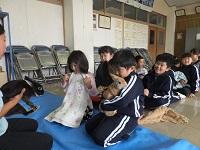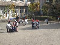 14日から今中生3人がマイチャレンジに来ています。本校の卒業生です。3年、4年、5年の教室で学んでいます。音楽では、児童の演奏の補助についていました。3年生では、プリントの丸付けをしました。4年教室では、給食の配膳をしていました。14日の二宮デーでは、手際よくビニル袋の片付けをし、中学生としてたくましくなった姿を見せてくれました。15日は就学時健診があったため、作業に取り組みました。イチョウの落ち葉を片付けましたが、ぎんなんが「くさい」と言いつつ、仕事はてきぱきとやってくれました。少し緊張しつつ、頑張っています。