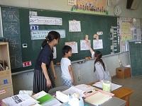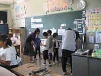 5校時に1年生が歯磨きの学習をしました。担任と養護教諭のTT(ティームティーチング)での学習です。はじめに「ちゃんとみがけているのかな」ということで、「1どうしてむしばになるの」「2よぼうするためにできること」などについて話し合いました。次に染め出し液をはにつけました。水道でゆすいできたところ、「ピンクになった」と見せ合っていました。(ピンクになったところは磨き残したところです)養護教諭が正しい歯磨きの仕方を指導し、もう一度歯磨きです。上手に磨けるようになってほしいものです。そして、自分の歯を大切に。体験的な学習をした1年生でした。