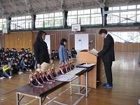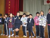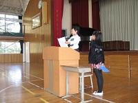 本日、広場の時間にスポーツ委員会主催の短縄跳び大会がありました。種目は「持久跳び」です。1年生から6年生までの児童の希望者が参加しました。最後まで残ったのは、5年生の女子でした。記録は12分です。周りの児童たちも応援しました。(広場の時間に実施するので、最大12分となっています。)最後に委員会の児童が、各学年の最後まで残った児童の名前と記録を発表しました。多数参加した児童の意欲がすばらしいと思います。