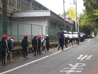 二宮デー終了後に、持久走試走を行いました。1~4年生は、教員と一緒にコースを歩いて確かめました。5・6年生は、教員と歩いてコースを確かめた後、軽く走ってみました。コースの一部は学校周りの道路を走ります。道路使用許可書もとっています。今日は、二宮デーの後なので、落ち葉もなく走りやすかったことと思います。当日までに落ち葉がつもったりぎんなんが落ちていたり、と心配ごとがありますが、子どもたちは元気よく練習に取り組んでいます。なお、当日はPTA環境整備委員の皆様が走路監視に御協力くださいます。また、今年から保護者のボランティアの方々にも御協力いただけます。通行量が多い道路なので、御協力はとてもありがたいです。子ども達も走ることに集中できます。