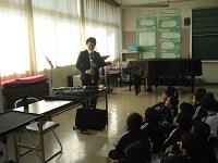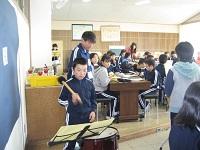 今年も和久文子先生、福田智久山先生を講師として、邦楽スクールコンサートを実施しました。体験させていただいたのは、琴と尺八です。5年生と6年生が交代で学習しました。第1音楽室では、和久先生に琴を教えていただきました。琴の音階で指使いを教えていただきながら、5年生は「さくらさくら」を、6年生は「越天楽」を演奏しました。第2音楽室では、福田先生に尺八を教えていただきました。一人1本練習用の尺八を使わせていただき、音を出す練習をしました。音を出すのはさすがに難しいのですが、子どもたちはがんばっていました。最後に講師の先生方の演奏を2曲聴かせていただきました。講師の先生から、「とてもよくがんばっていました」とお褒めの言葉をいただきました。子どもたちも学習が終わってからも福田先生を取り囲み、話をしていました。日本の伝統音楽に触れる貴重な体験学習の時間でした。