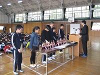 広場の時間に朝会を実施しました。はじめに表彰を行いました。理科展や氷上大会、とちぎの百様ジュニアコンクール、川崎オープン小学生卓球大会、しらさぎ杯硬式卓球大会、元気アップ杯マラソン、栃木県フィギュアスケート選手権大会などの表彰です。さまざまな分野で子どもたちが活躍しています。続いて学校長の話です。冬季オリンピックで活躍した選手たちは、あきらめずに努力したことなどを話しました。