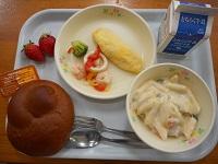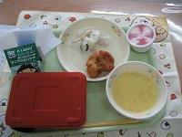 今年度のリクエスト給食の最後は、1年生の考えた献立です。メニューは「鳥のレモンソース、はるさめスープ、ハムと大根のマリネ、いちごアイス、パン、牛乳」です。1年教室では、大きな口を開けて、皆「おいしい」と食べていました。感想を聞くと、「レモンがすっぱくておいしい」「自分たちで考えた献立だからおいしい」「からあげをパンにはさむと、おいしい」と笑顔で答えてくれました。大人気メニューばかりで、子どもたちも満足そうでした。666キロカロリーとやや高めでしたが、心のエネルギーになりました。