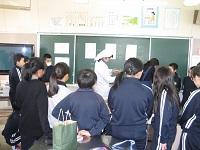 今回の地産地消献立は、地元のいちごです。地元の生産者の大門さんに「とちおとめ」と「スカイベリー」を提供していただきました。3年生の教室で、いちごについてのお話をしていただきました。とちおとめとスカイベリーの違いや見分け方、生産者により、いちごの味は異なること、栃木県はいちごの生産で50年間全国一位であること、などを分かりやすく話していただきました。その後、1組で子どもたちと交流給食に参加していただきました。いちごは、もちろん甘くておいしかったです。子どもたちも大喜びでした。