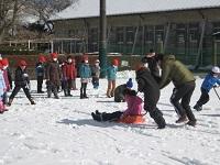 1年生は、生活科の学習で雪遊びをしました。友達と協力してすべり台やかまくら、ケーキなどを作りました。寒い中でも子どもたちは、「雪、大好き!」「楽しい」と寒くても冷たくても平気で遊んでいました。「子どもは風の子」・・寒さをものともせず、遊ぶ子どもは素敵です。生活科の学習で、氷も作っています。2時間目に氷づくり(カップなどに水を入れt日陰に置く)をしたところ、お昼にはもう凍っていて、子どもたちも驚いていました。
