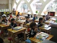 昇降口の風景(てるてる坊主、英語、みんななかよし)