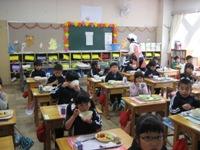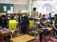 1年生の生活科の学習で、宇都宮動物園の方を招いて、ウサギ教室を実施しました。はじめにうさぎの体やえさなどに関する話を聞きました。その後、うさぎを抱いたり、聴診器を当てて心臓の音を聞いたりしました。耳をすませて、聞き入っていました。