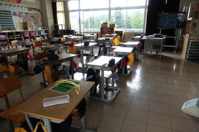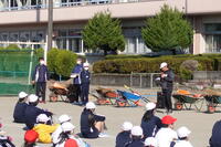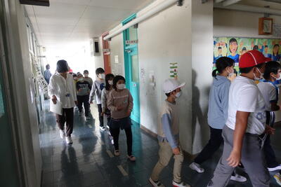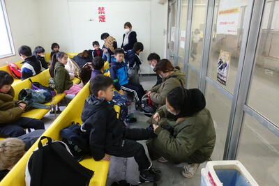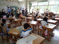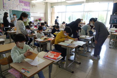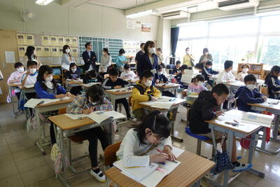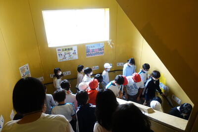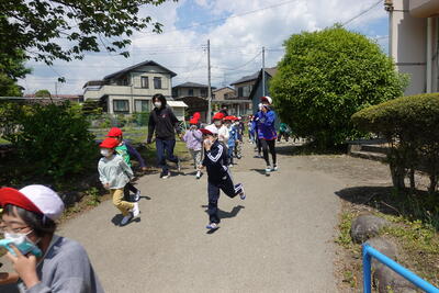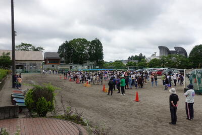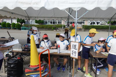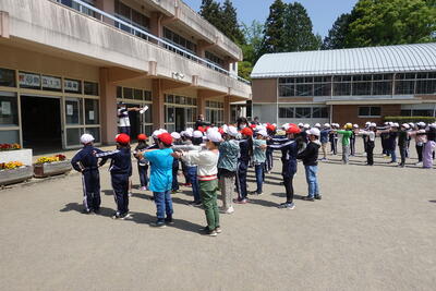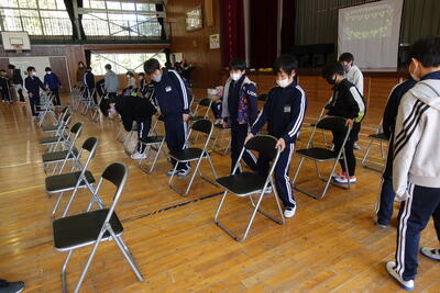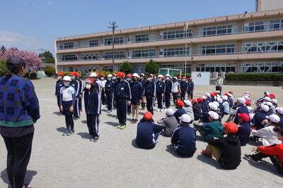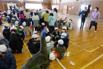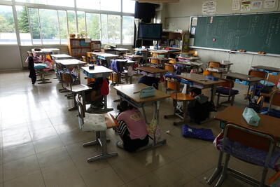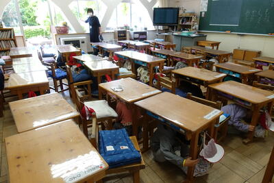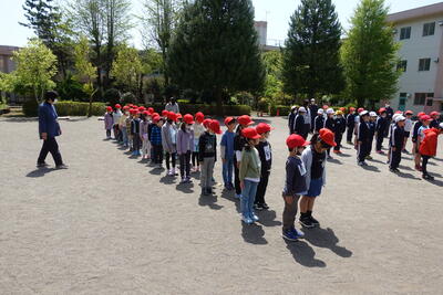1年生にとっては、はじめての避難訓練でしたが、放送や先生の指示をしっかりと聞き、机の下に身を机の下に隠したり、安全に避難したりできました。2年生以上も落ち着いて避難することができました。
