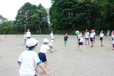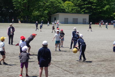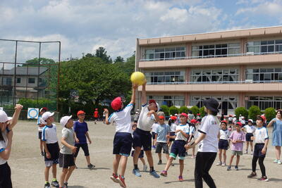 6月11日(火)になかよしタイムがあり、二宮班で全校生が校庭、前庭、中庭、体育館で遊びました。どろけい、鬼ごっこ、ヘビ鬼、ドッジボールなど、班ごとに決めた種目で遊びました。どの班からも大きな歓声があがり、笑顔がたくさん見られました。短い時間ではありましたが、汗びっしょりになる子がいるほど元気に活動していました。みんなで楽しく遊ぶことができました。