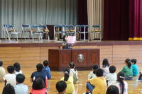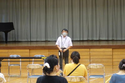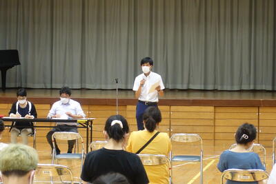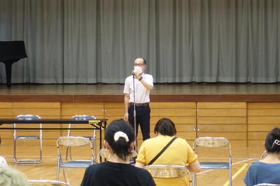 運動会については、PTA会長と校長より、9月28日(土)に半日で行うこと、家族とのふれ合いと栄養チャージのために30分のハーフタイムをとること、運動会が28日に実施できない場合の対応など、校内放送を利用しての説明がありました。家族のみなさんが運動会を見るだけでなく、お子さんとのふれ合いができることはとてもよい試みですね。