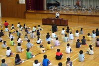 落ち着いて始業式に臨む子どもたち 黒澤校長先生のお話