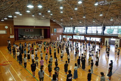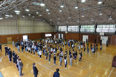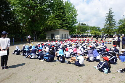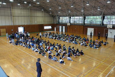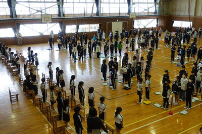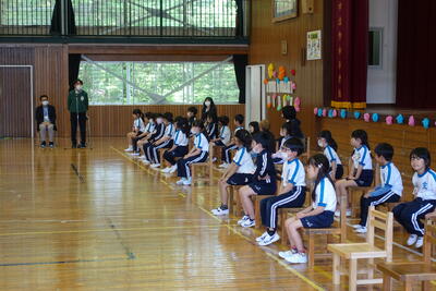 6月5日(金)の広場の時間に朝会がありました。子どもたちは体育館に整然と集合し、来ていない学年を静かに待つことができました。また、参加の態度も大変よく感心させられました。