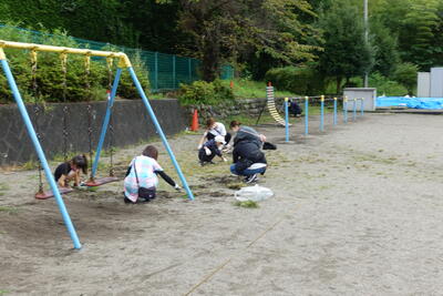 1時間ほどの作業ではありましたが、学校内外がとてもきれいになったのが分かりました。お休みのところ、多くの方々、子供たちに御協力いただき感謝しております。本当にありがとうございました。
