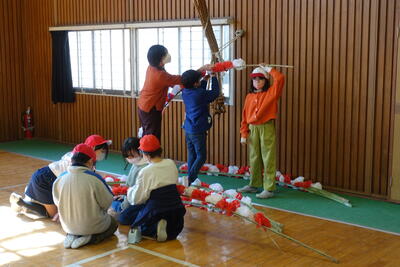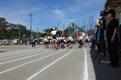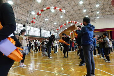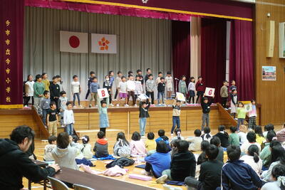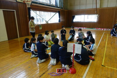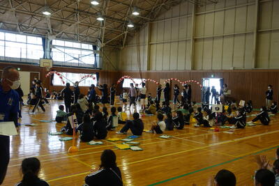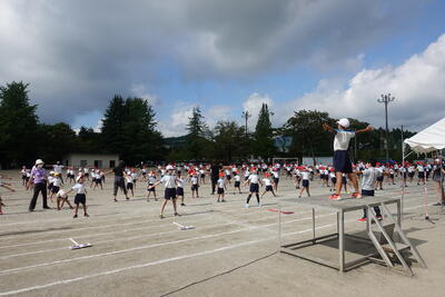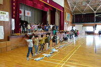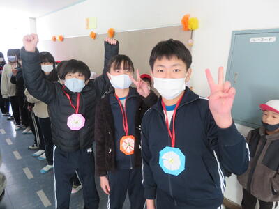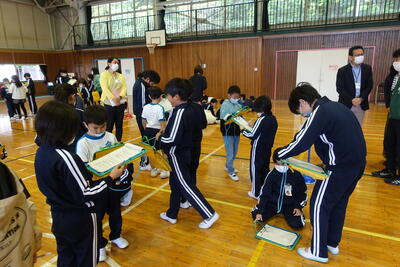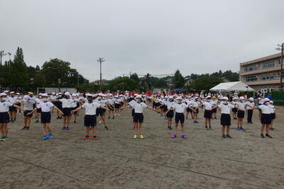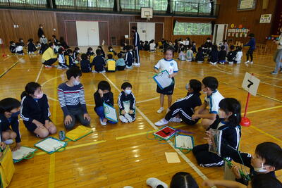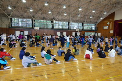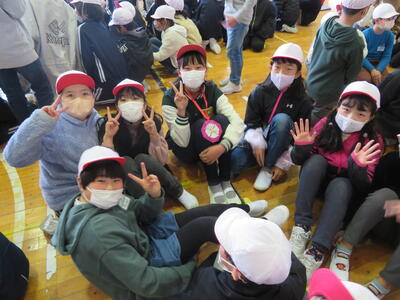 どの班も6年生が中心となりかけ声をかけながら、楽しく取り組んでいました。結果は優勝が5班、2位が6班、3位が12班でした。とても楽しい長縄跳び大会でした。