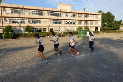 この長縄跳び大会は、スポーツイベント委員会が中心となり、計画・準備・運営をしました。8の字跳びで3分間を2回跳び、よい方を記録とします。1回目が終わると作戦タイムがあり、各班で順番を入れ替えるなどの作戦を立て2回目を跳ぶ、というルールで行いました。