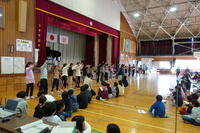 ☆静かに整列する子どもたち ☆児童代表菊地さんの発表