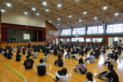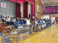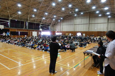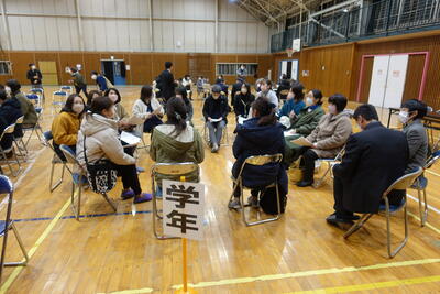 2月17日(金)に第3回PTA理事会・常置委員会が開催されました。はじめに各委員会ごとの振り返りがあり、今年度の活動の反省と来年度の計画について話合いがなされました。これまでは各教室に分かれて実施していましたが、今回は体育館に一同に会して実施しました。各委員会の事業報告や来年度への取り組みについて、全体で情報共有をすることができました。
